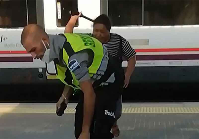 Tras que el vigilante le recriminara que viajaba sin billete y sin mascarilla, la mujer se hizo con la defensa que lleva de dotación el vigilante y lo golpeó con ella en varias ocasiones. El vigilante de la estación, a pesar de que recibió varios golpes, no resultó con contusiones de gravedad. Sí que tuvo que ser atendido por el SEM y luego presentó denuncia.