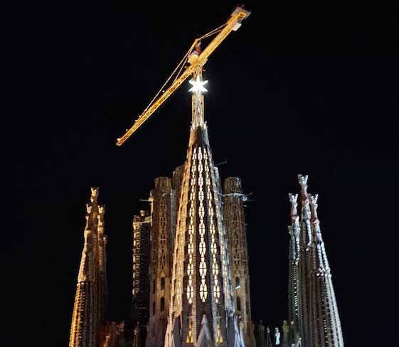 Una emblemática estrella se iluminó en la Torre de María de la Sagrada Familia como hito histórico en el más que centenario inicio de la obra que se remonta a 1.882, la cual fue encendida simbólicamente el día de la Inmaculada. 138 metros de altura del pináculo que la sustenta, 5,5 toneladas de peso y un coste de 1,5 millones de euros.