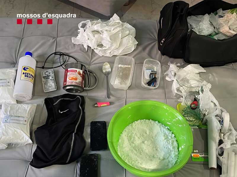 Los mossos detuvieron a los dos presuntos autores del robo, dos armas de fuego cortas y varios cartuchos. Además, en esta entrada encontraron un laboratorio de cocaína con todo el material químico preparado para tratar y cortar la droga, así como la propia sustancia y 600 plantas de marihuana en una plantación indoor intensiva. También, se intervino el vehículo que se utilizó presuntamente en el robo de finales de 2022, así como prendas utilizadas por los autores el día de los hechos.
