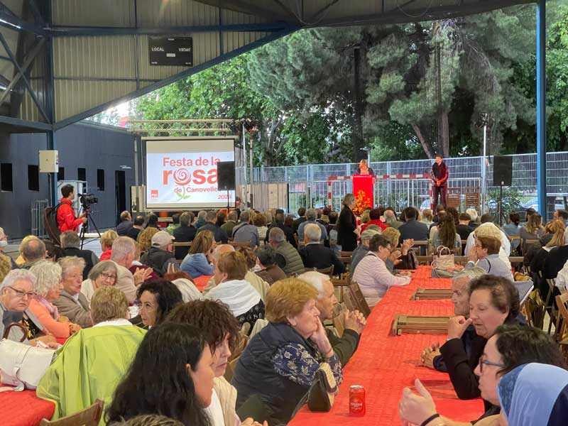 Este sábado el PSC de Canovelles congregó a 300 militantes y simpatizantes en la Fiesta de la Rosa, una de las más antiguas del socialismo catalán, que este año llegaba a su 41ª edición. La fiesta se realizó en la Pista Polivalente debido a la lluvia y contó con actuaciones de varios grupos y música al terminar la cena.