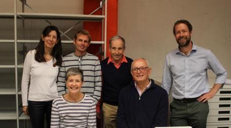 Raquel Lázaro, Josep M. Rodoreda amb Tom Stephen i família a l’Arxiu de Granollers l’any passat. Arxiu Mpal.