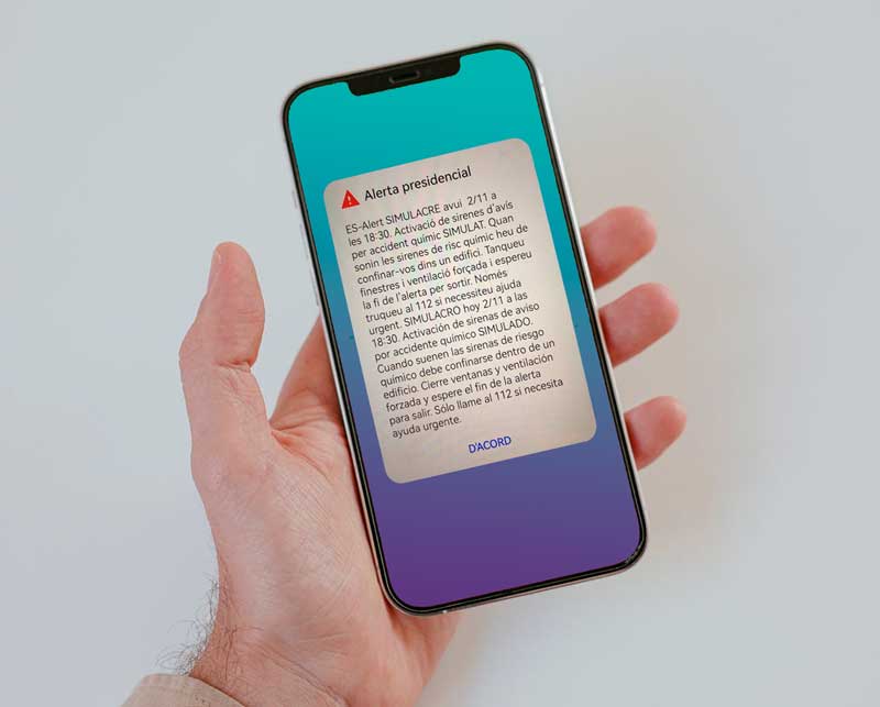 El mensaje irá acompañado de un sonido fuerte y característico, distinto al resto de tonos del teléfono. No será necesario llamar al 112: bastará con leer el texto y pulsar el botón que aparezca en pantalla para detener el sonido.
