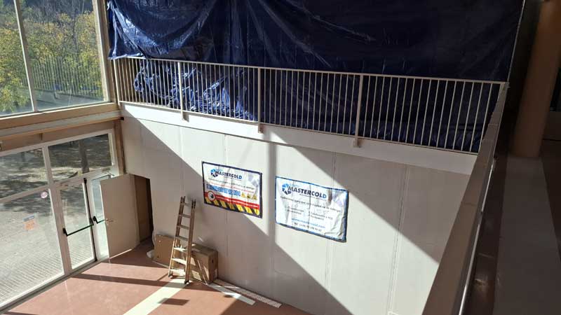 En paralelo a esta actuación también se están realizando otras obras de mejora en el mismo equipamiento: Por un lado, se sustituyen las actuales gradas telescópicas, que ya no funcionaban correctamente, por unas nuevas. Y, por otra parte, se renueva el suelo del gimnasio.