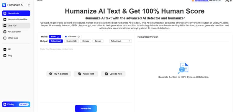 1. El posicionamiento central de Humanize AI: no escribir, sino “hacer que suene humano”.