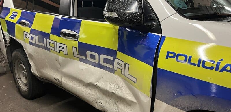 En el momento en que el coche policial se situó a la altura del camión para tratar de detenerlo, el conductor realizó un giro brusco de volante y embistió lateralmente al vehículo policial.