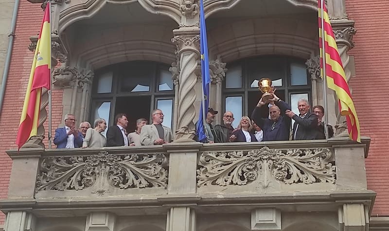 Diumenge tocava novament doblet. A les onze, els membres de l’equip i directius actuals del club BM Granollers eren rebuts en una recepció oficial per l’alcaldessa, Alba Barnusell, a la sala de govern de l’Ajuntament, en la que també hi eren presents el president de la Federació Catalana d’Handbol, Jaume Fort i Natalia Moreno, en representació de la Federación Española de Balonmano.