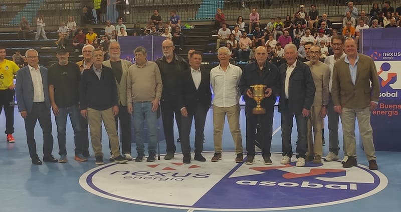 La festa, però continuava a la nit a l’escenari de gala, el Pavelló Municipal d’Esports, el pavelló vell o com volen dir-li ara, el del parquet. Només amb les absències de tres dels mítics d’aquell partit, José María “Patxi” Pagoaga Larrañaga, que dissortadament moria als 44 anys l’any 1995; Joaquim Borrego; José Luis Sagarribay, peça clau en aquell partit, per malaltia, i l’entrenador Joaquin Crespo Quini, que està recuperant-se d’una intervenció, la resta de jugadors i tècnics rebien l’homenatge del club i de la ciutat, fent-els-hi entrega de la samarreta commemorativa amb el 50 a l’esquena. Així van anar desfilant Josep Prat delegat de l’equip, Ferran Raga, segon entrenador, Aperador, Bahi, Paco Baños, Castellví, Calabuig, Masip, Antonio Fraile, segon porter, Josep María Gómez, Vera, Pons i Sagarzazu. La nit va acabar amb un sopar al mateix pavelló, amb els exjugadors, entrenadors i persones relacionades amb el club.