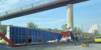 Una salida de vía de un camión en la AP-7 en Mollet provoca largas retenciones