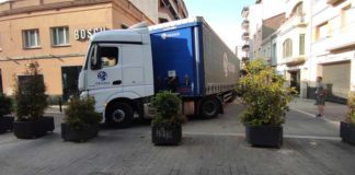 Un camión de gran tonelaje provoca un atasco en hora punta en la plaza de...