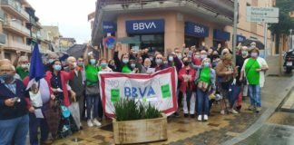 Concentració contra el tancament de l’oficina del BBVA a Bellavista