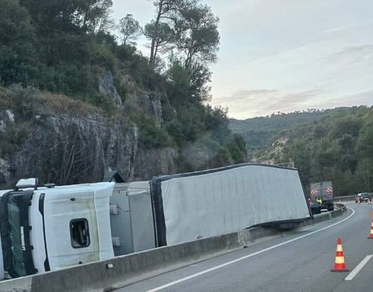 Un camión portugués volcado en la C-17 en Tagamanent dificulta el tráfico desde este lunes