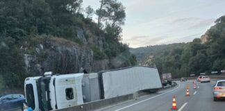 Un camión portugués volcado en la C-17 en Tagamanent dificulta el tráfico desde este lunes