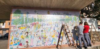 Canovelles instala un gran mural de Pilarín Bayés en la plaza de la Joventut