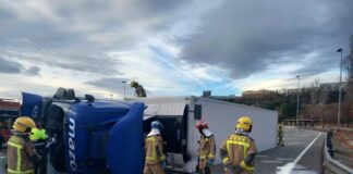 Un camión vuelca en el área de servicio de la AP-7 en la Roca